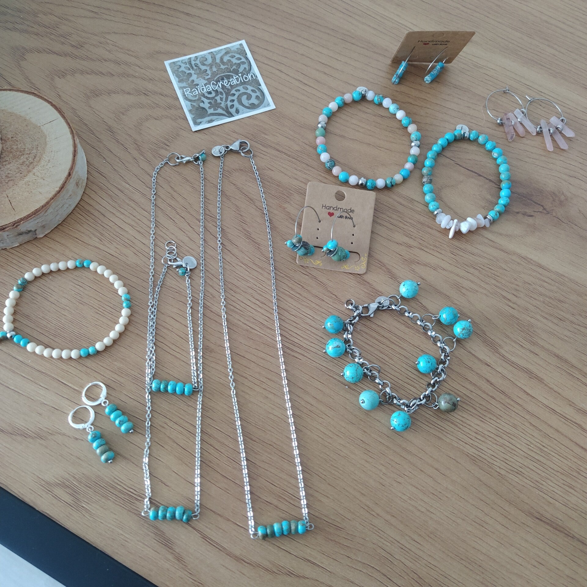 Turkoois/ Howliet is bijgekleurde Howliet. Werkt kalmerend, aardend, opent het derde oog, geeft inspiratie. Brengt kennis en evenwicht, kan twijfels oplossen. Omdat t een hoog calciumgehalte heeft is dit versterkende werking bij tanden, en botten, bevorderd aanmaak van moedermelk. Positieve werking bij de spijsvertering, spanningshoofdpijn, slapeloosheid en nachtmerries. Beschermsteen tegen negatieve invloeden