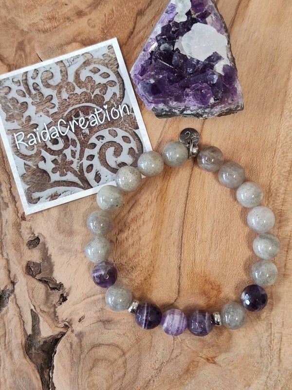 Facet Amethist geslepen en ronde Labradoriet kralen