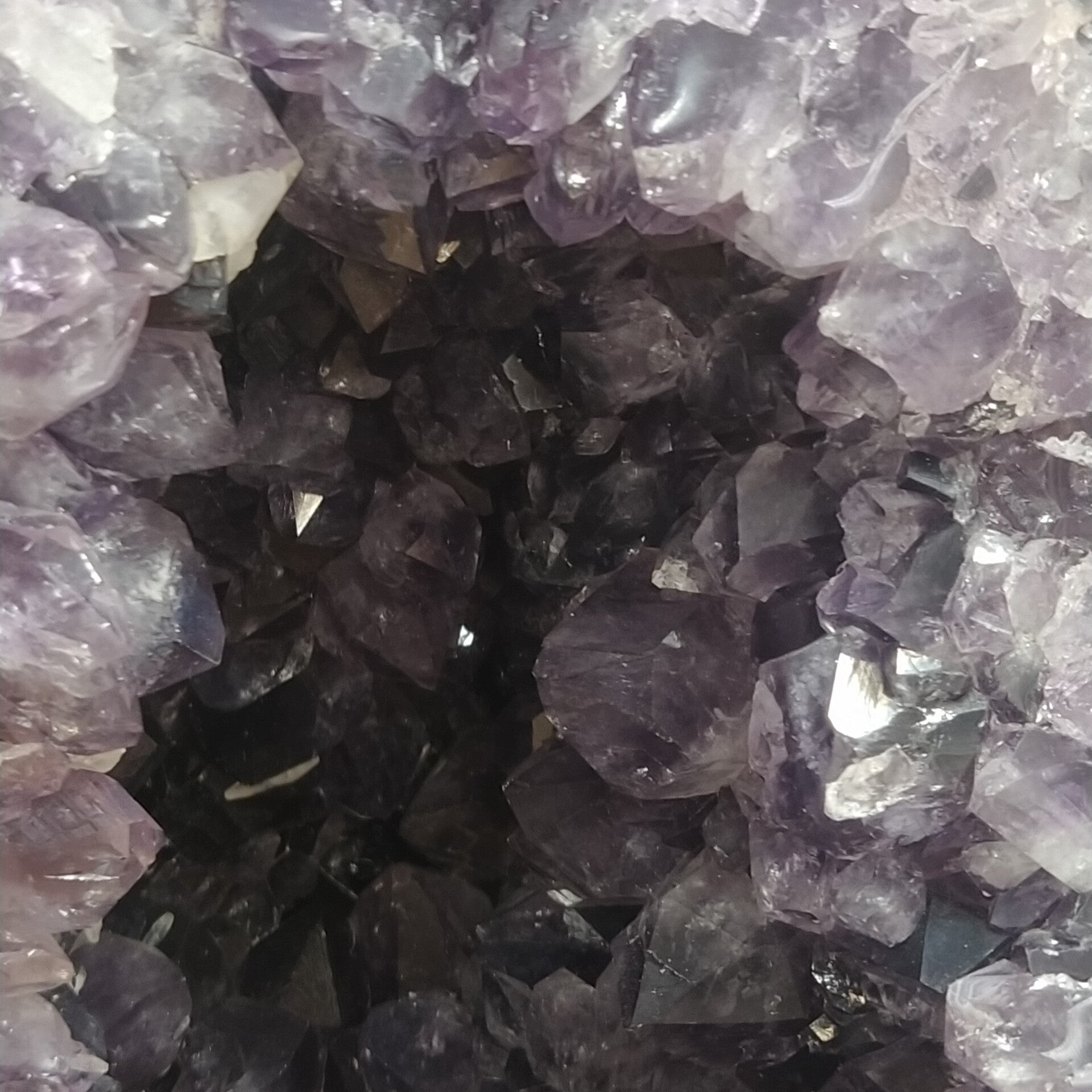 Prachtige diep paarse Amethist geode met calciet verrassing aan de binnezijde!