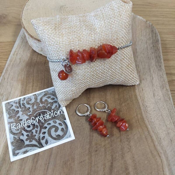 Deze oorbellen hebben Carneool chips en zijngemaakt van met 925 zilveren ringetjes