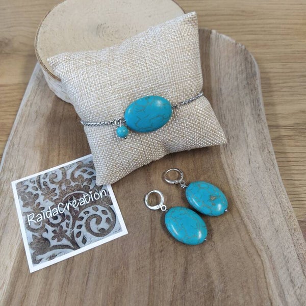 Deze turkoois is een natuursteen in ovale vorm evt. met bijpassende oorbellen! De schuifsluiting geeft het een universele pasvorm.